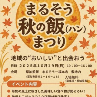 【イベント出店のお知らせ🎉】 来る10月19日(日)、草加煎餅まるそう一福本店さんで開催される「まるそう 秋の飯...